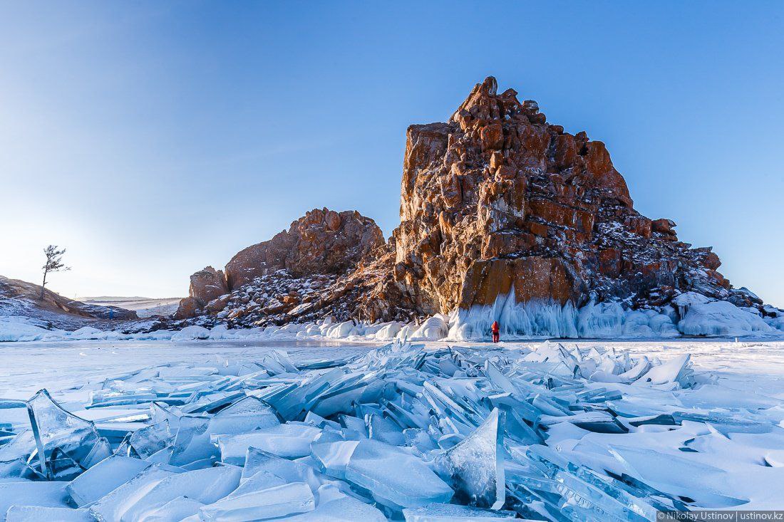 Сердце Байкала - остров Ольхон. Таинственный, магический с уникальной природой и непередаваемой атмосферой. Тысячи туристов едут сюда зимой, чтобы увидеть знаменитый прозрачный лёд Байкала, усеянный трещинами и пузырьками, величественный мыс Хобой (северная оконечность Ольхона), скалу Три брата, ледяные гроты. От зрелищных видов острова и его энергетики замирает сердце и захватывает дух.